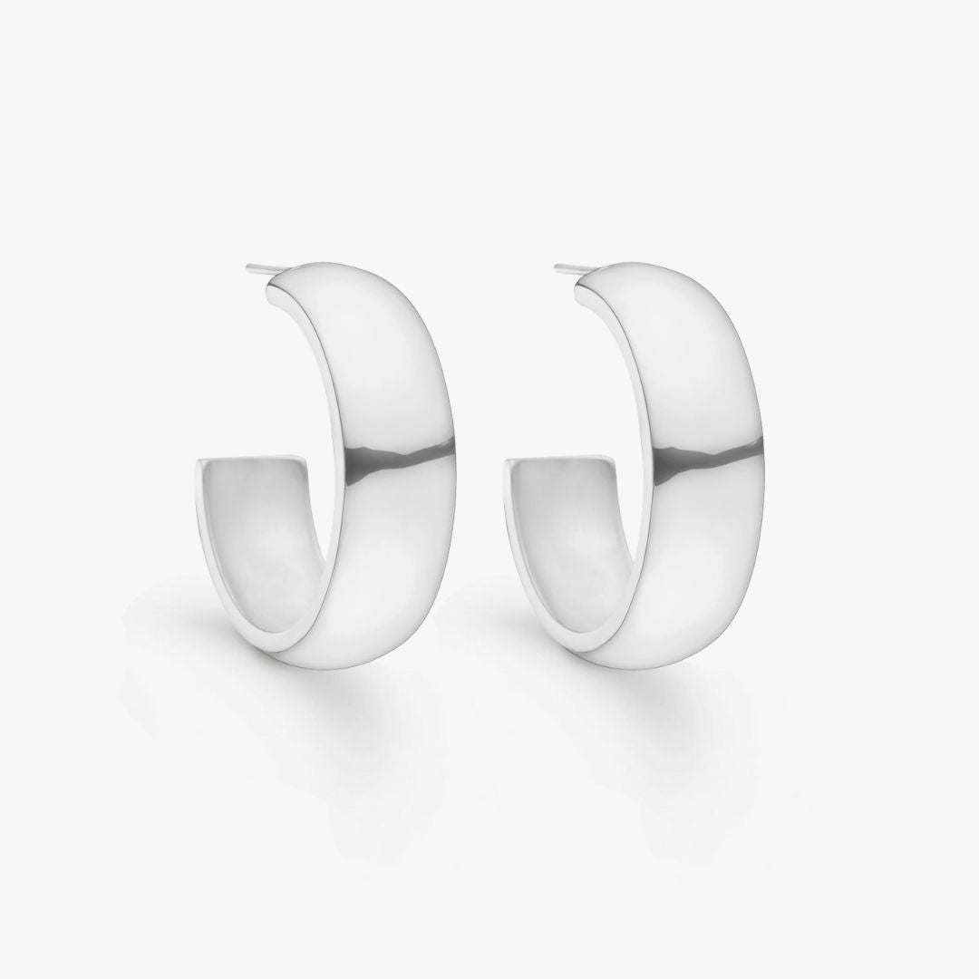 Chunky Hoop Earrings, 925 Silver Plated, Small