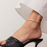 A refined contrast of soft, feminine freshwater pearls and a bold panzer chain. This thoughtfully balanced design adds a gentle elegance to a cool, chunky aesthetic, creating an anklet that feels both modern and timeless. Each freshwater pearl is carefully hand-selected, ensuring that no two are alike and that every piece is uniquely yours.