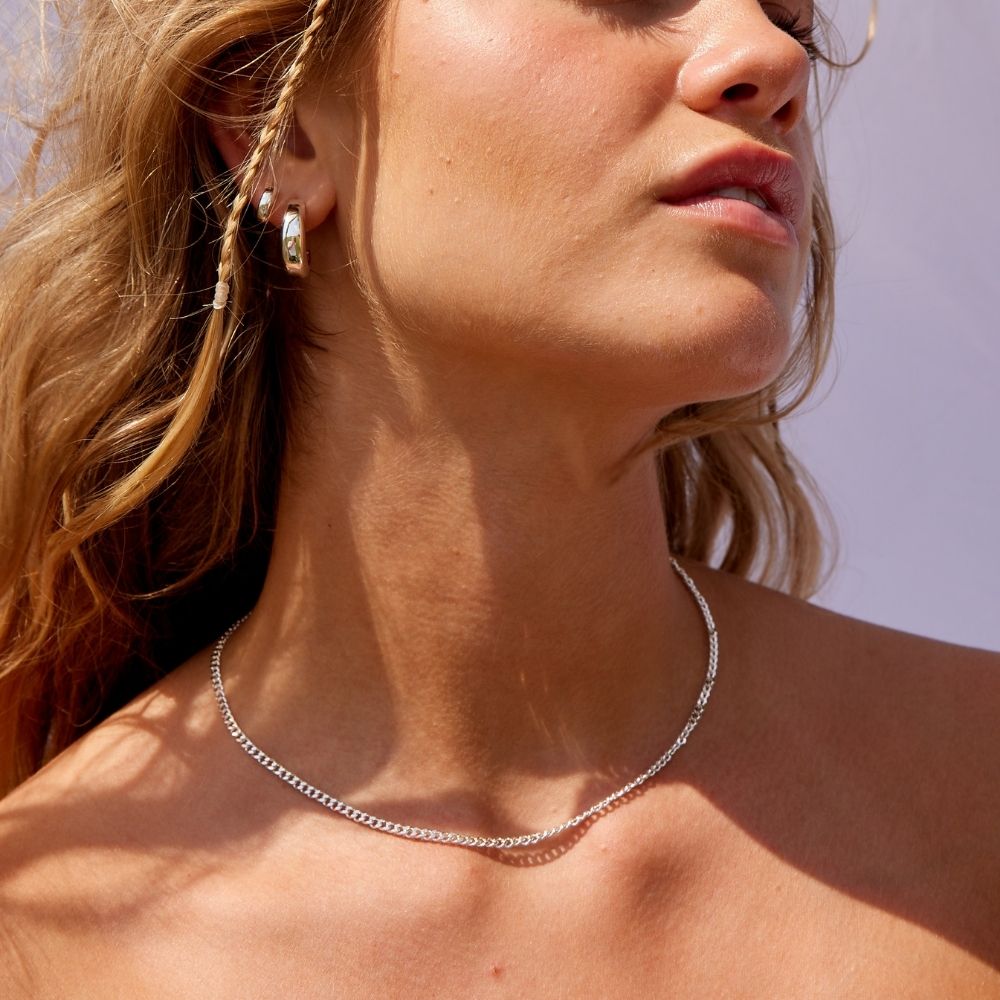 Facet Curb Chain Necklace in 925 Silver, 3 mm