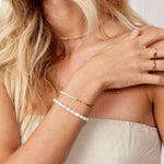 A refined contrast of soft, feminine freshwater pearls and a bold panzer chain. This carefully balanced design brings an elegant touch to a cool, chunky silhouette. Each freshwater pearl is hand-selected, ensuring no two are alike—making every bracelet uniquely yours.