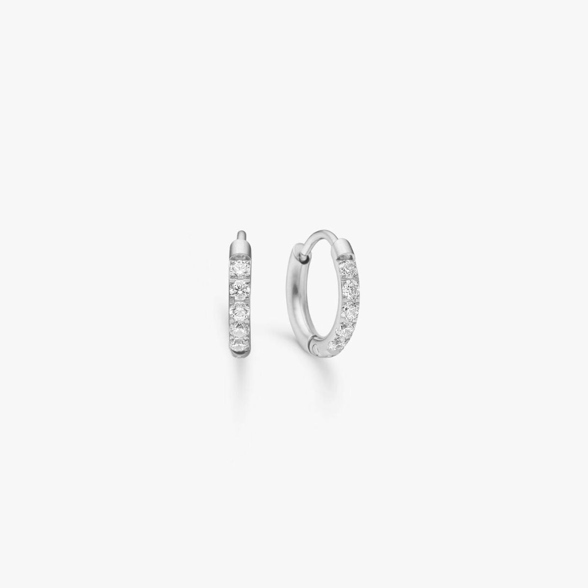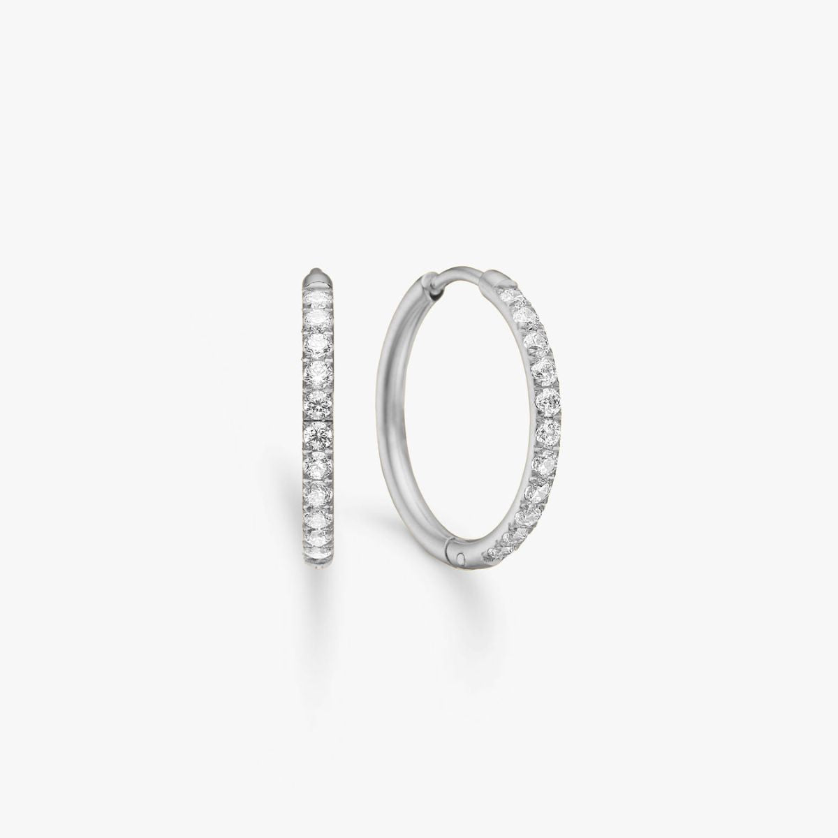 Classic Crystal Hoop Earrings, 925 Silver, 14 mm
