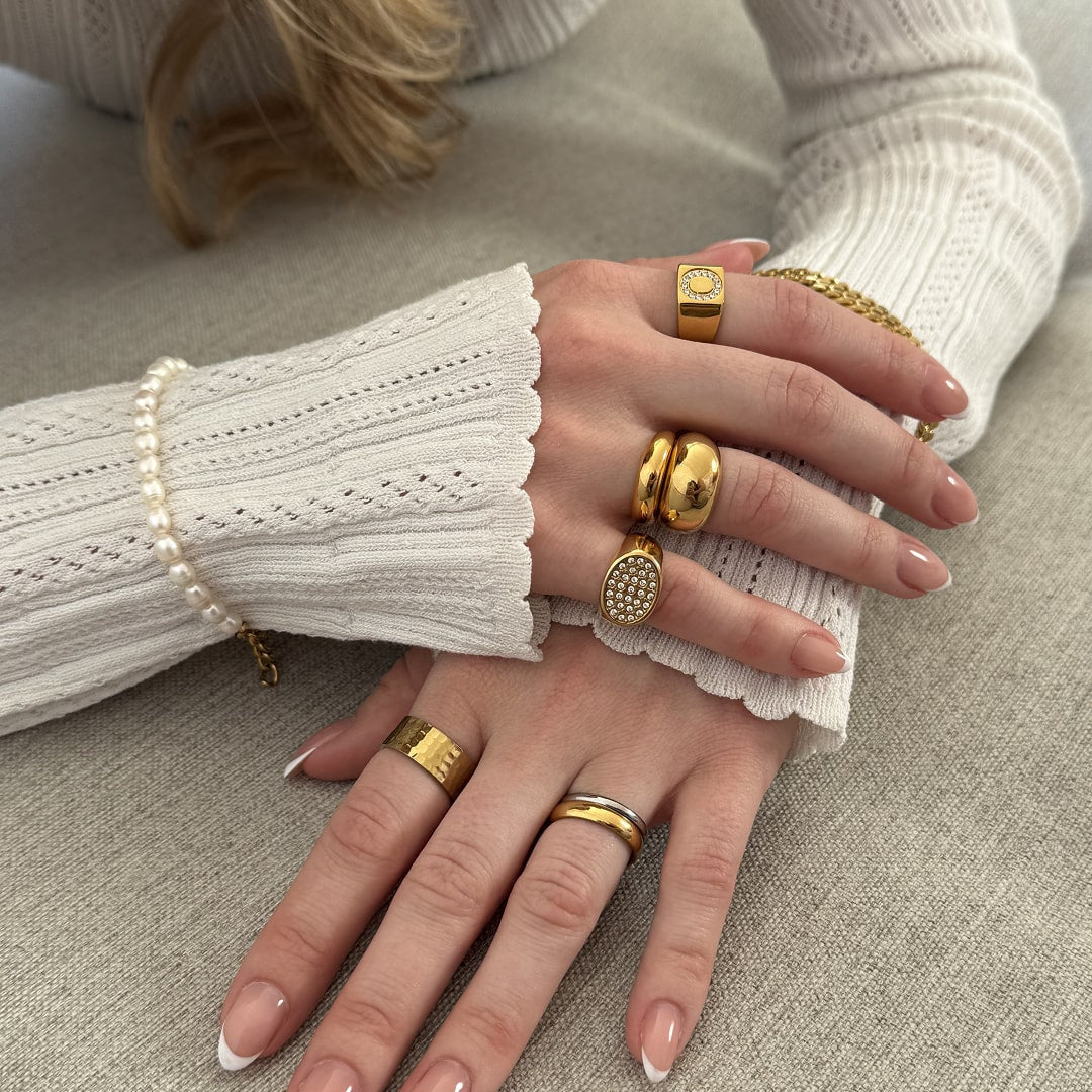 The softly rounded profile offers a comfortable fit while adding volume and character to the hand, making it a striking piece that elevates any look with quiet confidence.