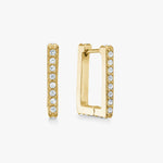 Must-have square hoop earrings adorned with radiant Cubic Zirconia crystals. Each stone is meticulously hand-set, reflecting refined craftsmanship with a precise focus on detail.