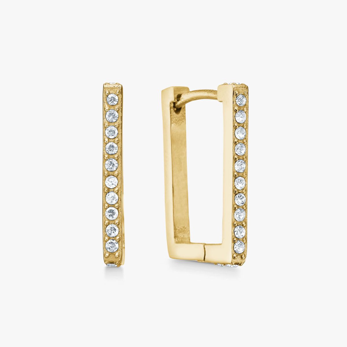 Classic Square Crystal Hoop Earrings, 18K Gold Plated, 10 mm