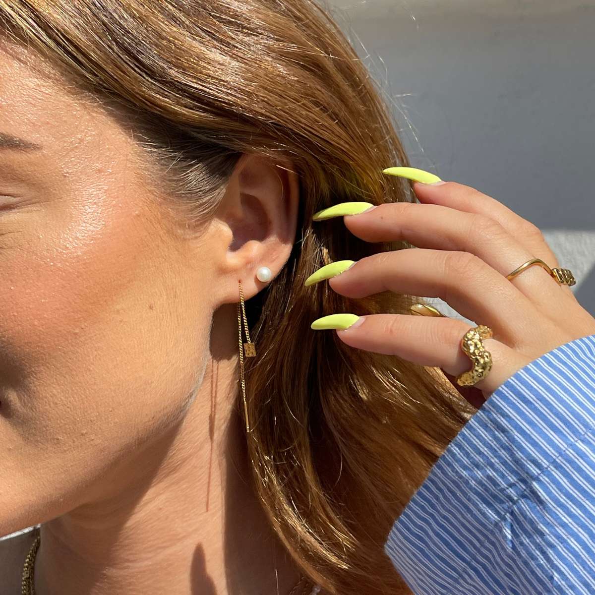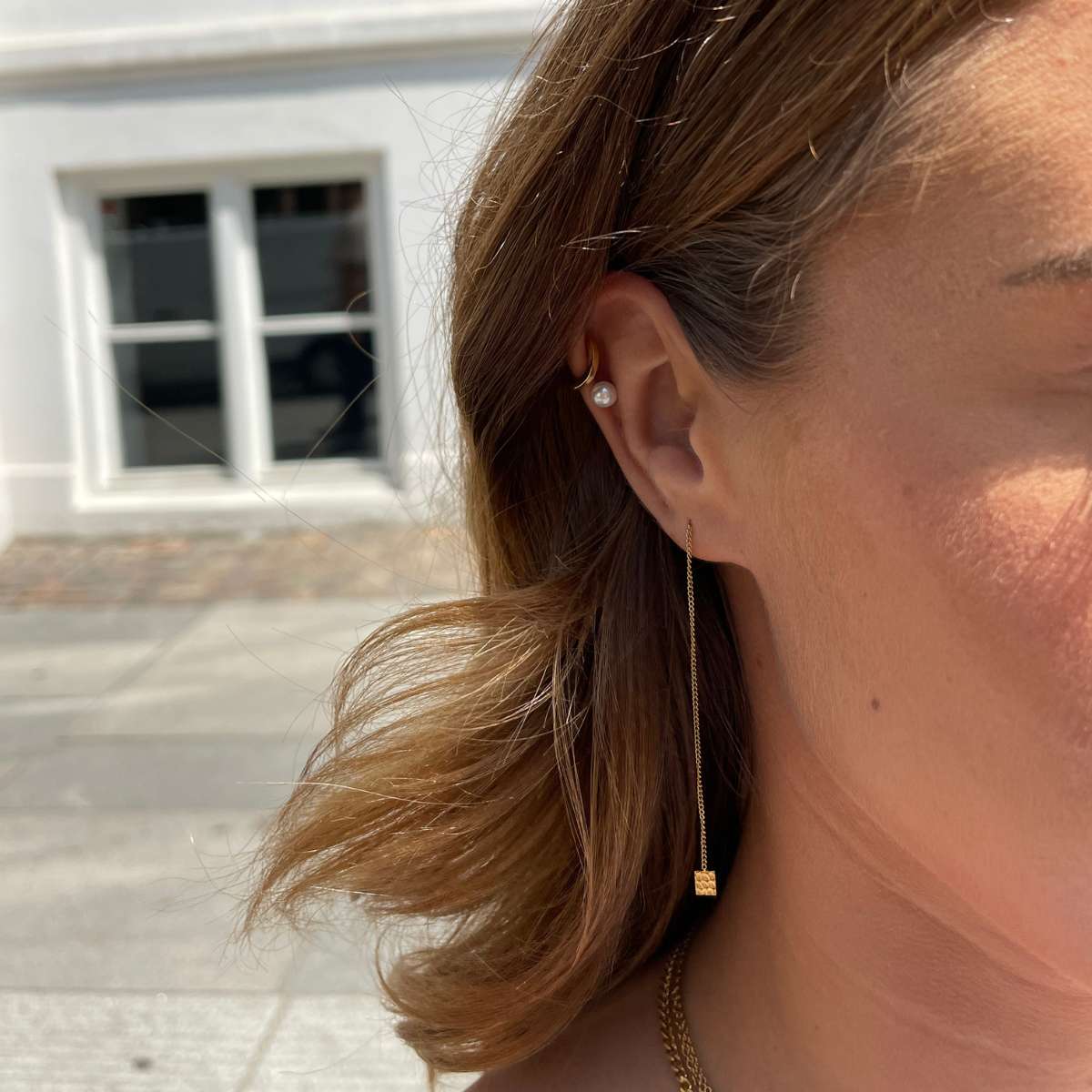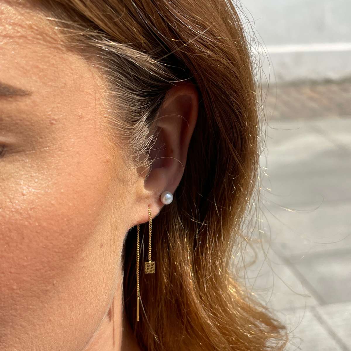Classic pearl stud earrings crafted with genuine freshwater pearls, each one carefully hand-selected. No two pearls are alike, giving you a truly unique pair where every detail is thoughtfully considered. Style them with my hoops or other stud earrings for an effortlessly elegant look. The image features, among others, the LIMITED Hammered Drop Earrings.
