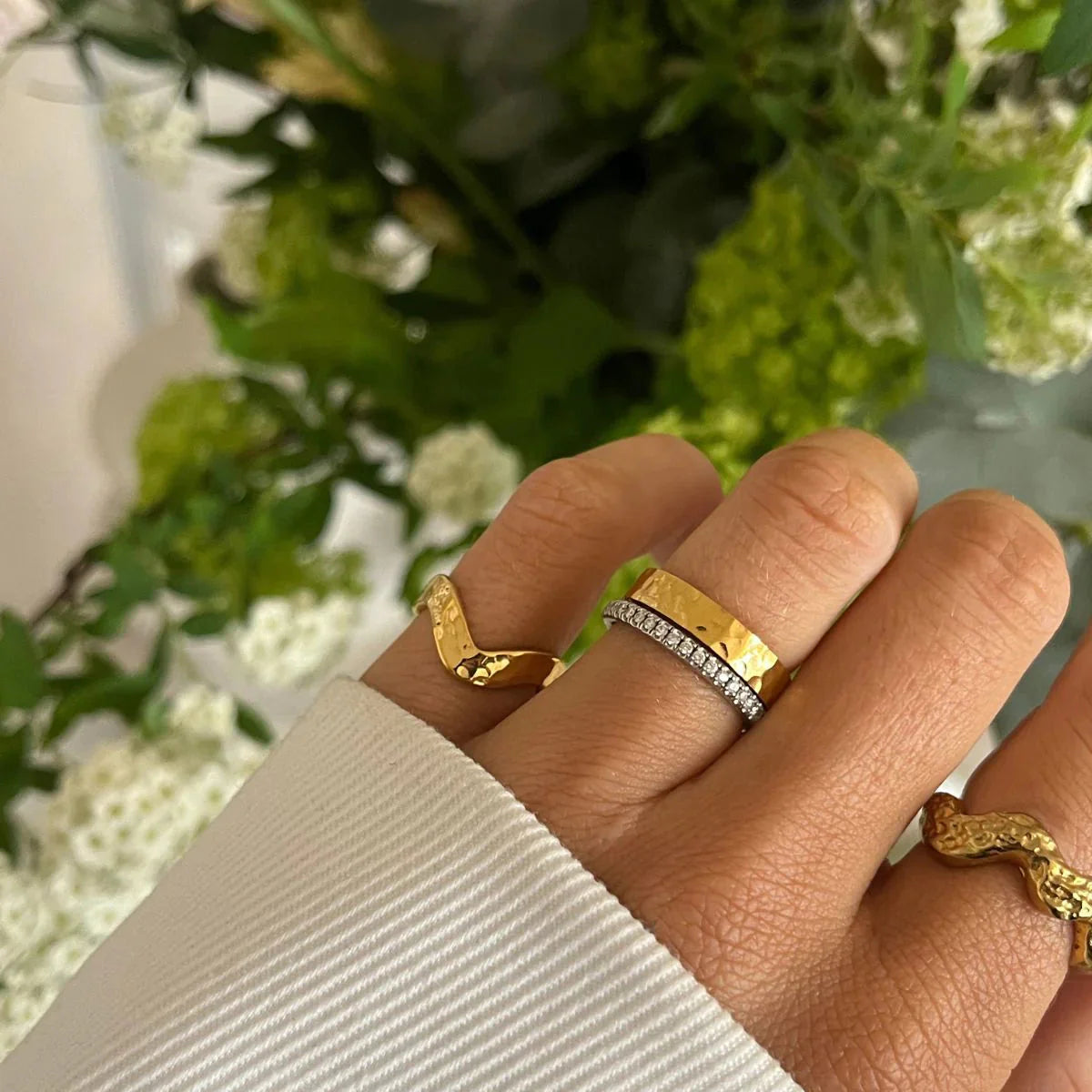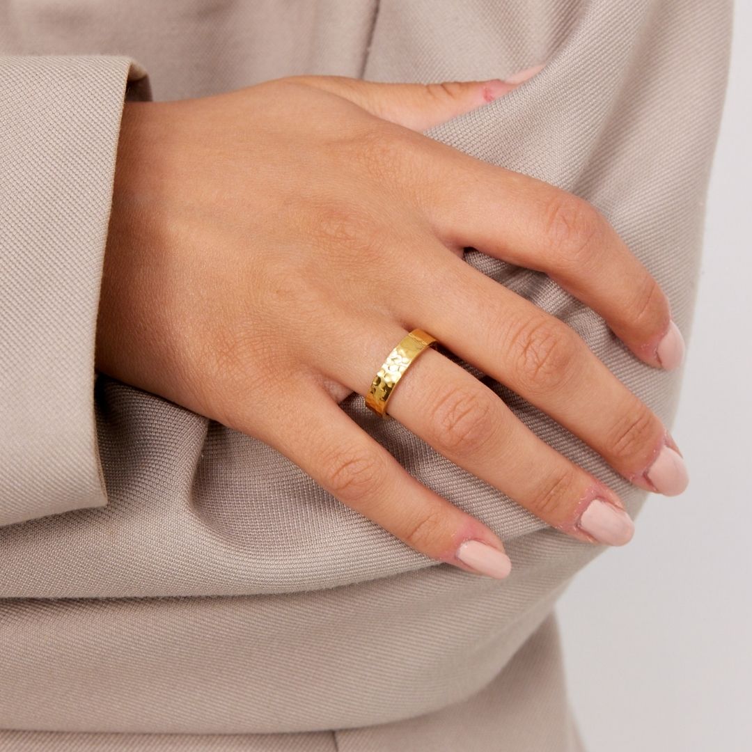 Hammered Band Ring 18K Gold Plated · 4 mm