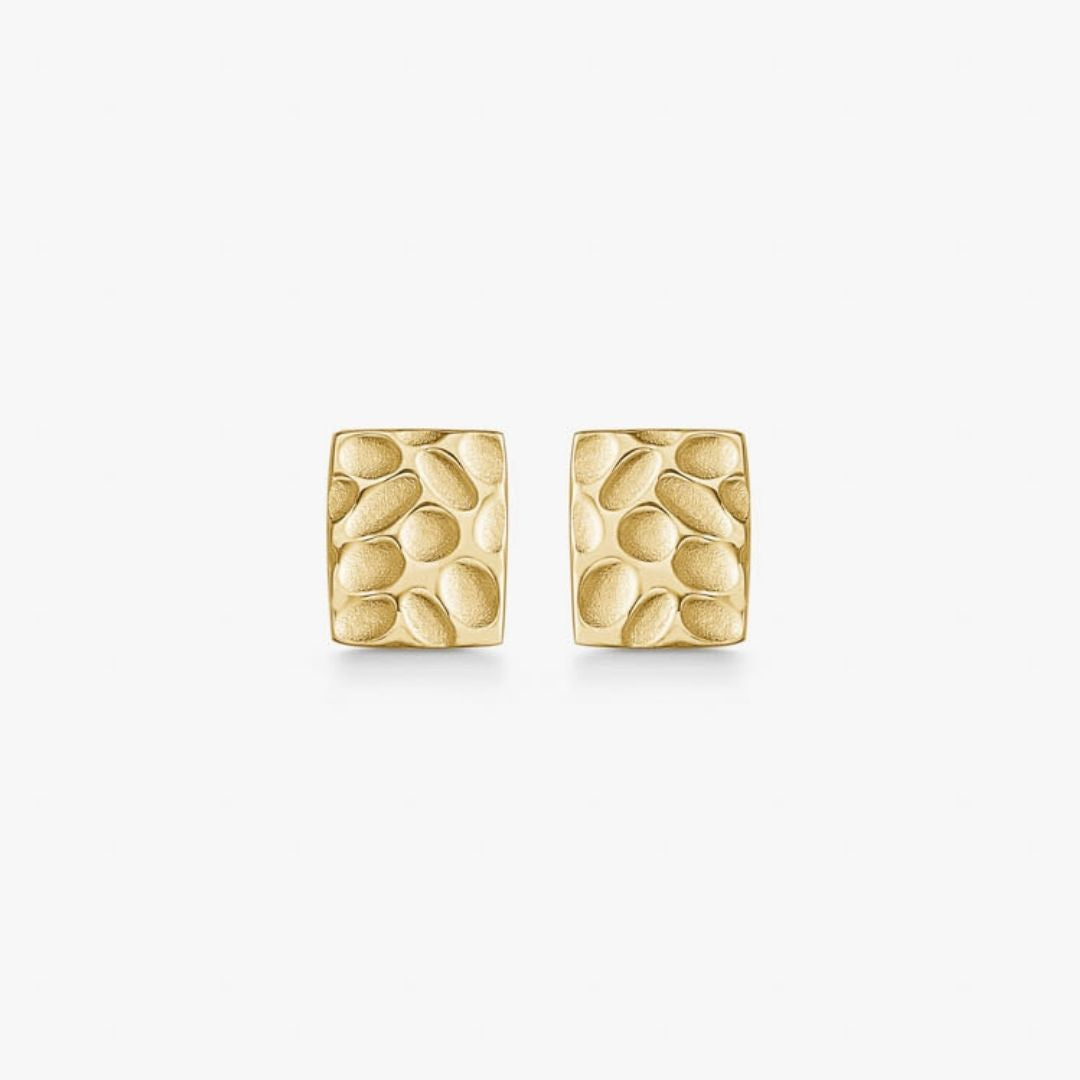Hammered Square Stud Earrings, 18K Gold Plated