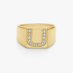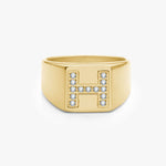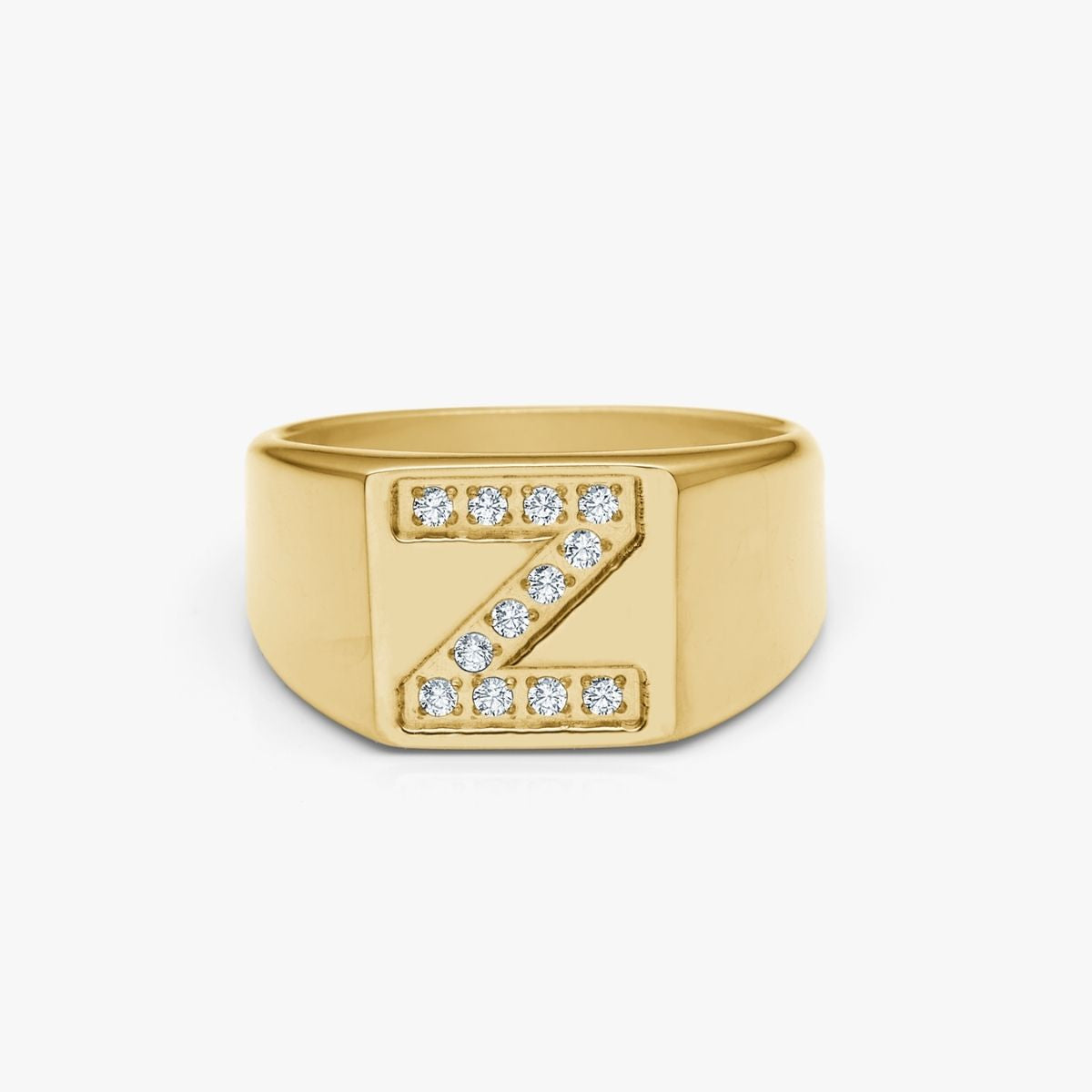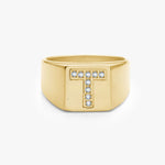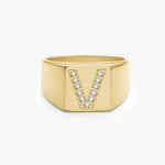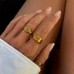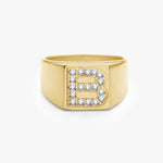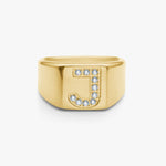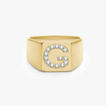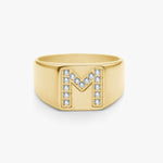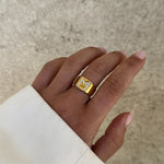 Crystal Letter Square Signet Ring 18K Gold Plated