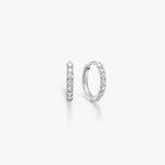 A classic hoop elevated with a refined row of crystals set along the front. Clean and minimalist in expression, these hoops are perfect for mixing with other earrings or wearing alone. Their compact size also makes them ideal for styling as a helix hoop in the upper ear.