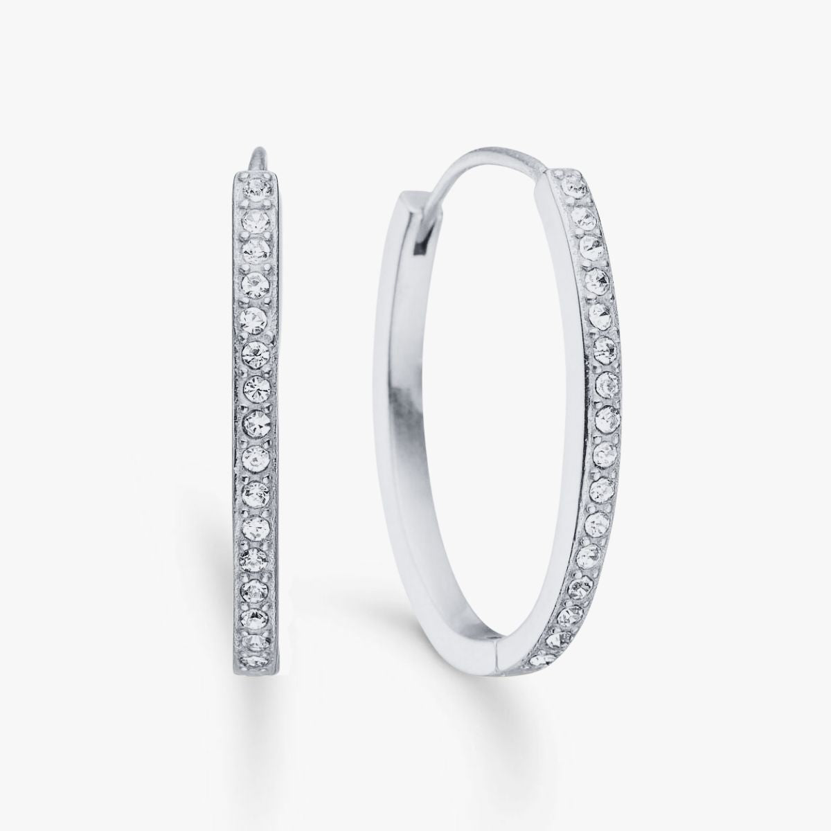 Classic Crystal Hoop Earrings, 925 Silver, 25 mm