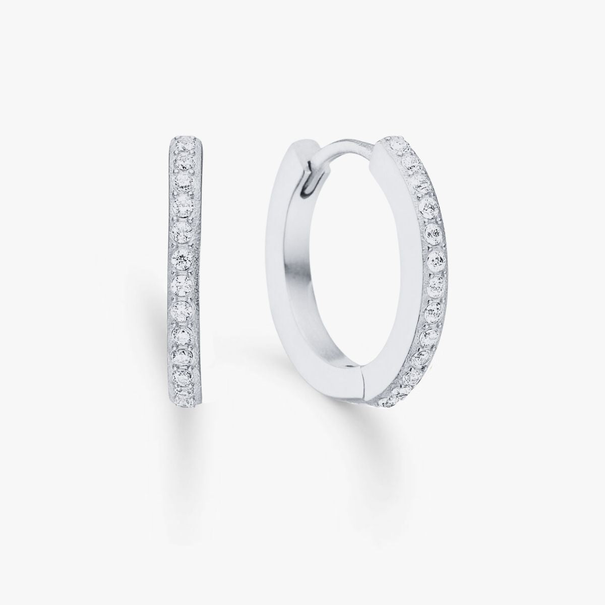 Classic Crystal Hoop Earrings, 925 Silver, 16 mm
