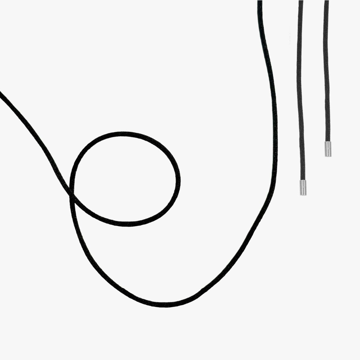 A refined satin necklace cord designed to offer versatility and modern contrast. Its soft, fluid texture allows pendants to rest beautifully—whether styled high at the collarbone, worn close as a choker, or wrapped twice around the neck for a layered, contemporary look.