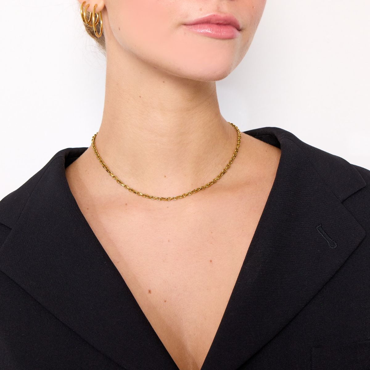 A classic faceted chain with strong character and refined style. At 3 mm, the necklace strikes a perfect balance between femininity and edge, creating a cool, confident look that transitions effortlessly from everyday wear to special occasions.