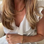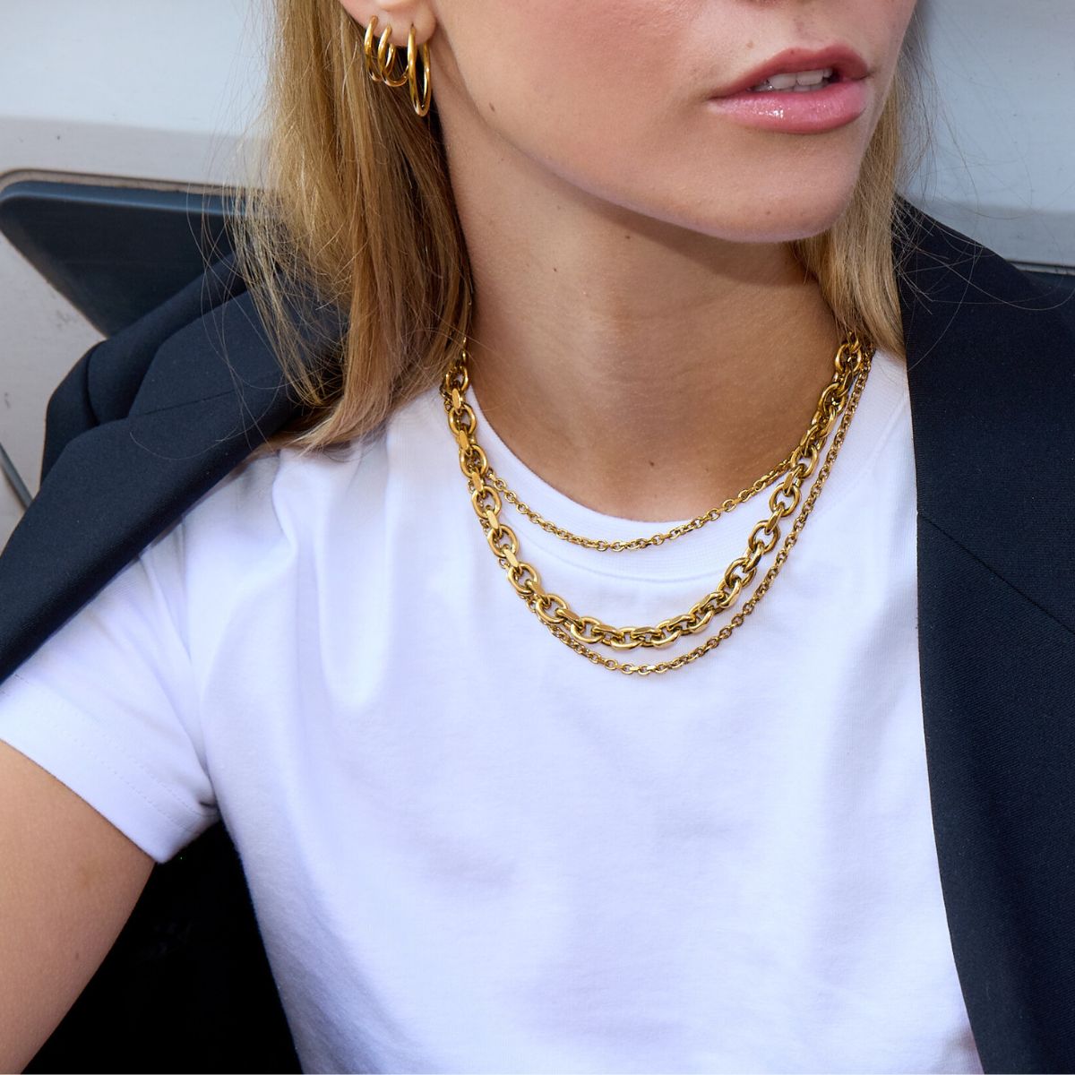 A voluminous faceted chain designed to make a powerful statement. At 8 mm, the necklace carries a bold, chunky character—perfect worn alone as a statement piece or layered into a stacked necklace look for added depth and attitude.